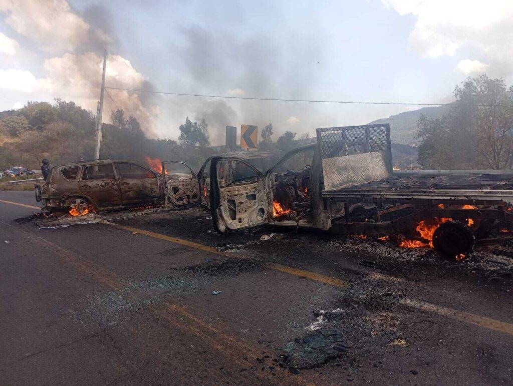 Michoacán., lunes 17 de noviembre de 2025.- Presuntos sicarios del Cártel Jalisco Nueva Generación (CJNG) organizaron una serie de “narcobloqueos” en carreteras federales y estatales de al menos 12 municipios de Michoacán, donde incendiaron una decena de vehículos, informó la Secretaría de Seguridad Pública estatal.