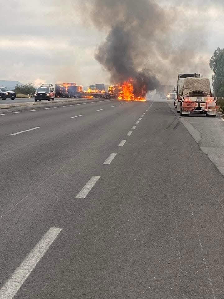 Zacatecas, viernes 03 de octubre de 2025.- La madrugada de este viernes desconocidos realizaron bloqueos con vehículos incendiados en tramos carreteros de los municipios zacatecanos de Calera, Villanueva, Fresnillo, Río Grande, Cuauhtémoc y Sombrerete, informaron autoridades estatales.