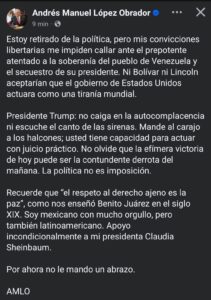 Cdmx., sábado 03 de enero de 2026.- El expresidente de México, Andrés Manuel López Obrador (AMLO), reapareció públicamente con un mensaje...