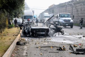 Cdmx., jueves 11 de noviembre de 2025.- Un taxi que trasladaba pirotecnia explotó y posteriormente se incendió la mañana de...