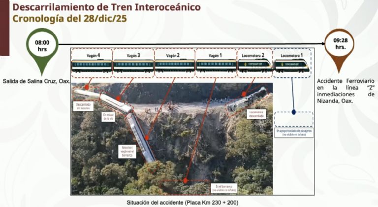 Señaló que desde el primer momento se brindó atención a los pasajeros y personal lesionado, siendo el paramédico a bordo del tren la primera respuesta, y posteriormente se realizó el traslado de heridos a hospitales de Oaxaca con el apoyo del IMSS Bienestar, la Secretaría de Marina, Cruz Roja, Sedena, Protección Civil y el Grupo Ferroviario del Sureste.