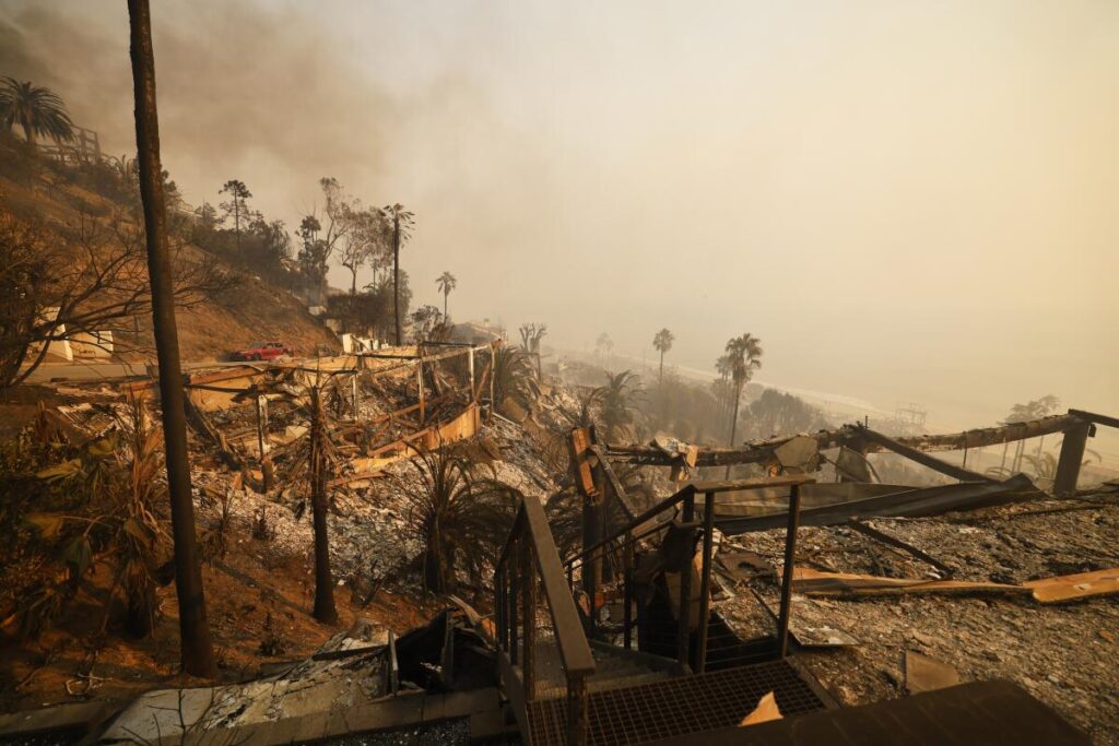 El incendio de Pacific Palisades, considerado el más destructivo en la historia de Los Ángeles, comenzó el 7 de enero de 2025 cerca de un sendero con vista al vecindario costero. Las llamas se extendieron hasta Topanga y Malibú, arrasando más de 9 mil 308 hectáreas y causando daños aproximados de US$150.000 millones. Ese mismo día, otro incendio denominado Eaton avanzó en otra zona de Los Ángeles, dejando 19 muertos y destruyendo 9 mil 400 estructuras.