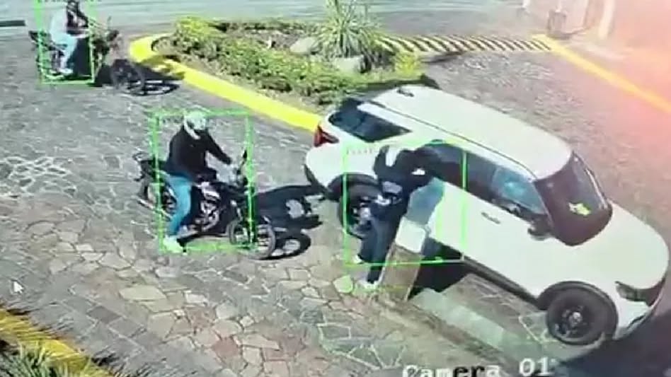 Una cámara de videovigilancia instalada en el fraccionamiento registró el intento de robo y el posterior enfrentamiento. El material, que comenzó a circular en redes sociales, muestra cómo los motociclistas interceptan la camioneta blanca en el acceso al conjunto habitacional.