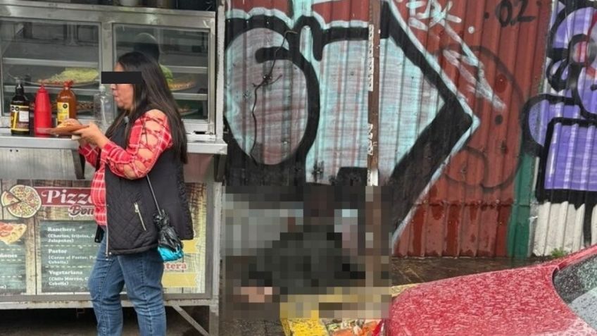 Cdmx, jueves 09 de octubre de 2025.- Un grupo de ciudadanos disfrutaron de un pedazo de pizza mientras yacía el cadáver de un indigente justo a un lado del puesto de comida, hechos que fueron captados por peatones y difundidos durante la tarde de ayer, miércoles 8 de octubre.