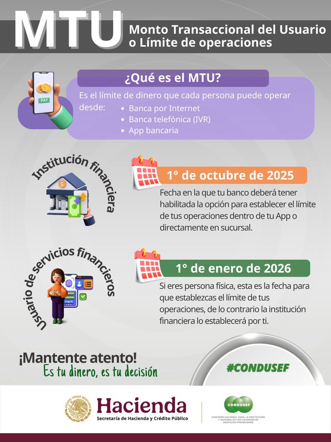 Si bien el MTU se podrá modificar después del 1 de octubre, se recomienda a los usuarios que configuren su límite antes del 30 de septiembre de 2025, para evitar retrasos, bloqueos de operaciones o límites automáticos que puedan afectar su actividad financiera.