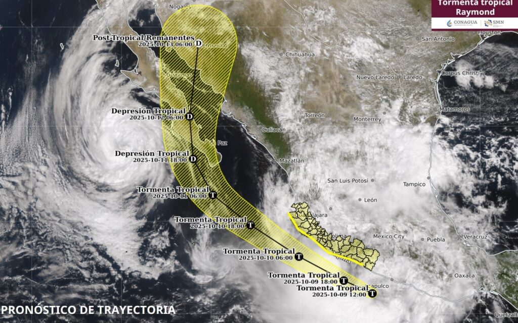 Cdmx, viernes 10 de octubre de 2025.- La tormenta tropical Raymond, decimoséptimo ciclón de la temporada, se formó en las últimas horas frente a las costas de Guerrero, en el océano Pacífico, informó este jueves el Servicio Meteorológico Nacional (SMN).