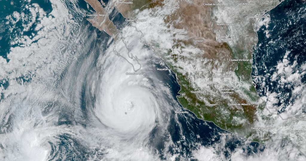 En su más reciente reporte, el SMN informó que el centro del huracán se ubicaba a 415 kilómetros al oeste-suroeste de Cabo Corrientes, Jalisco, y a 370 kilómetros al sur de Cabo San Lucas, Baja California Sur.
